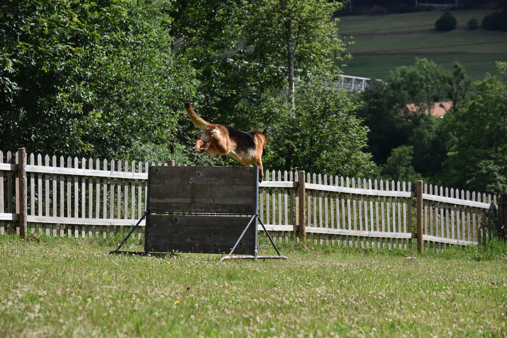 In der Jung- und Freizeithundegruppe wird, mit dem Augenmerk auf einen alltagstauglichen Familienhund, ein gewisser Grundgehorsam erarbeitet und erhalten.
